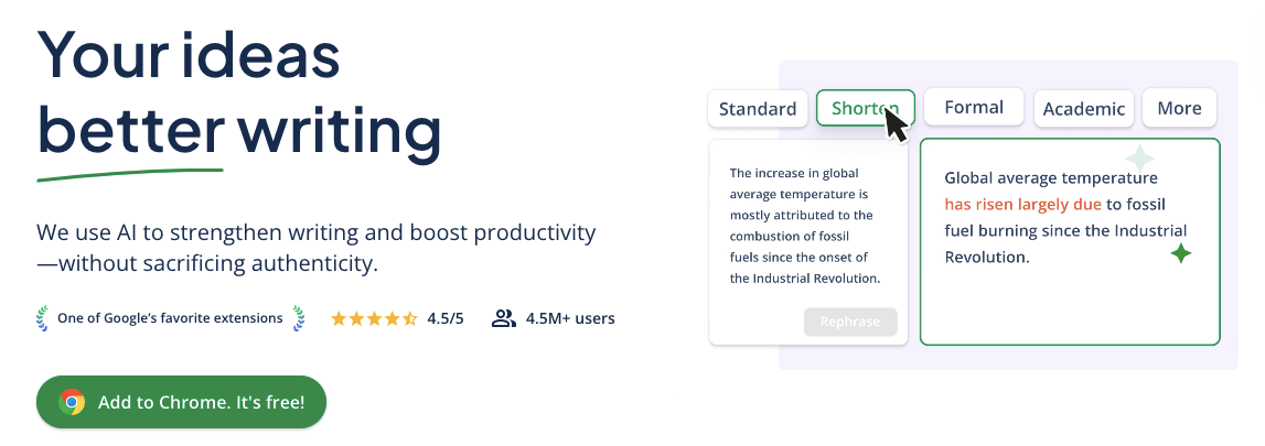 QuillBot’s AI-powered writing platform offers a suite of tools to enhance your writing: